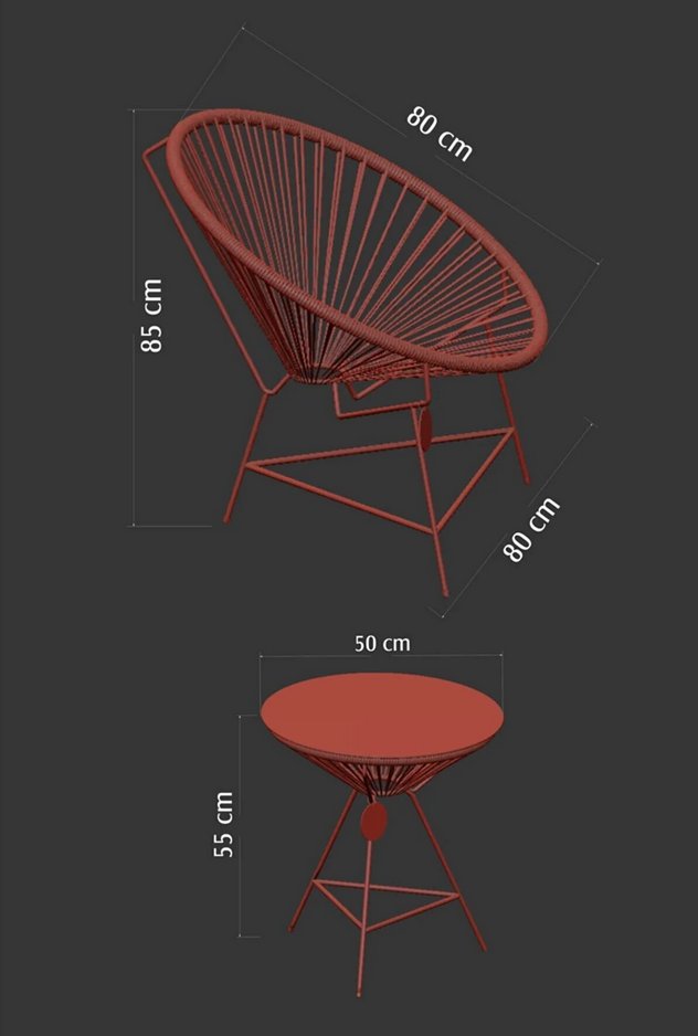 Креслата с размери 85 х 80 х 80 см предоставят удобство и стил за вашата градина или тераса. Масичката с размери 55 х 50 х 50 см е практичен акцент, който допълва визията на комплекта.