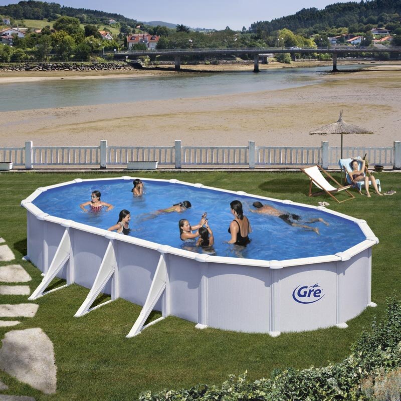 Превърнете своя двор в оазис на забавление и свежест с овалния сглобяем басейн "Atlantis". С бели външни подпори и метална стена, този басейн е дизайниран за семейно ползване и осигурява уют през цялата година.