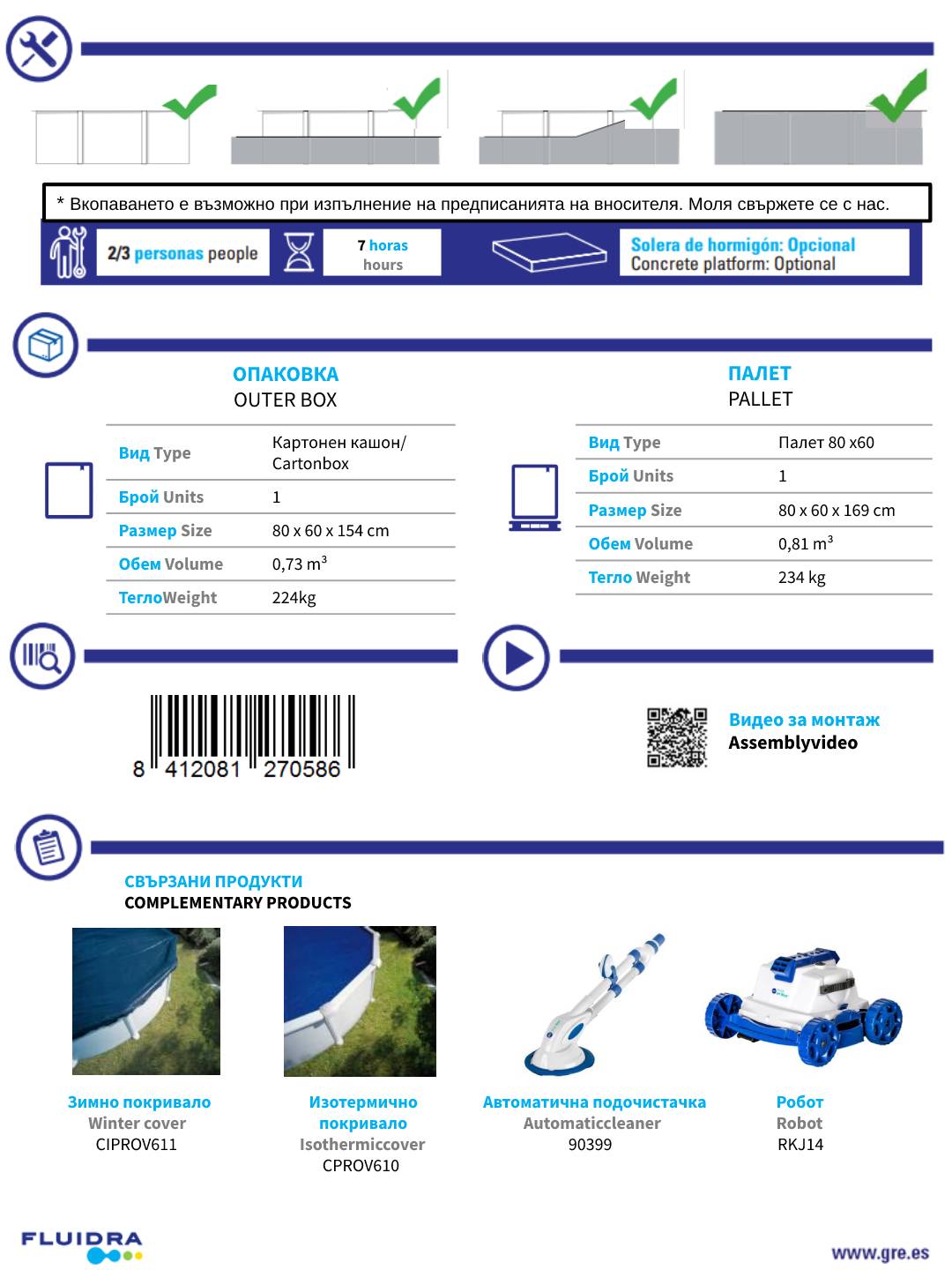 ДОСТАВКА, МОНТАЖ И ОБУЧЕНИЕ за поддръжка и работа на басейна.