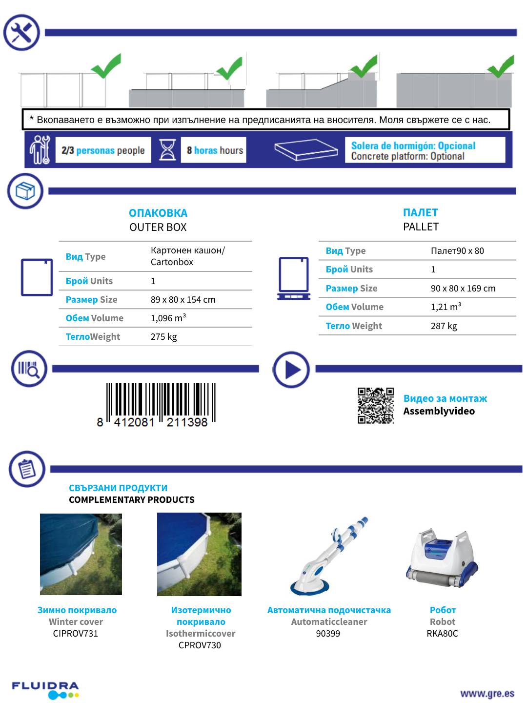 ДОСТАВКА, МОНТАЖ И ОБУЧЕНИЕ за поддръжка и работа на басейна.