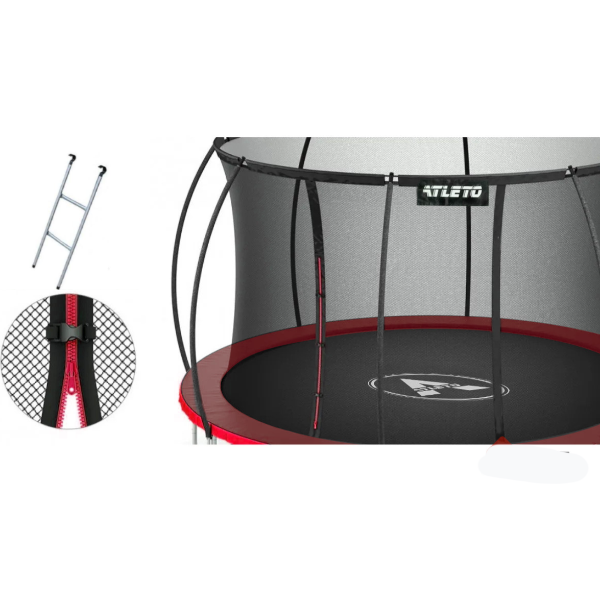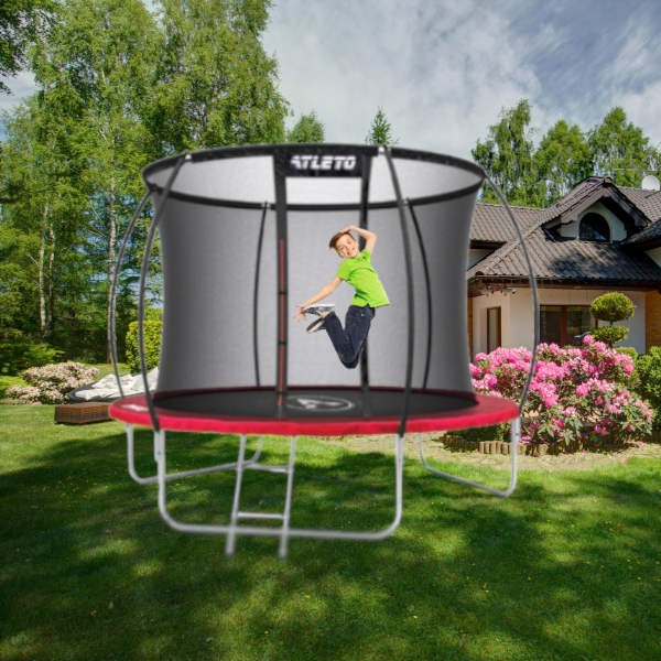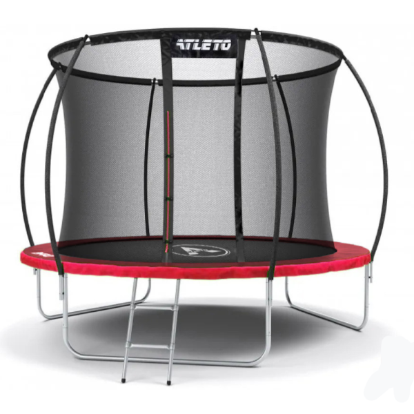 Батут ATLETO 244 см. червен с вътрешна предпазна мрежа и стълбичка
