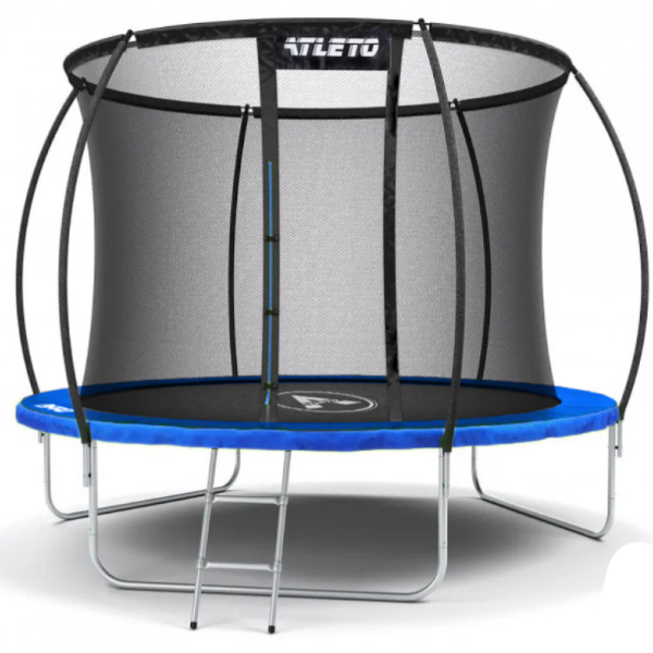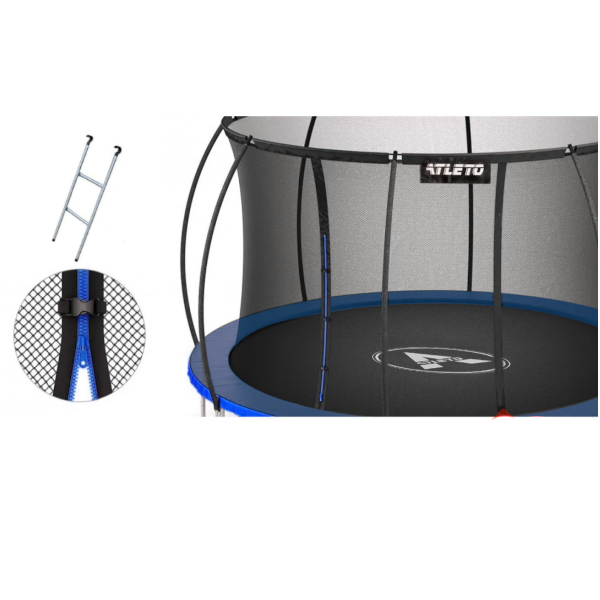 Батут ATLETO 244 см – син модел с вътрешна мрежа и стълбичка