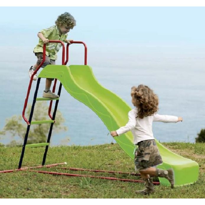 Пързалката е със здрава конструкция и не изисква вкопаване или цементиране. Когато не се използва, лесно може да се прибере или премести. Гарантирано забавление и безопасност за вашите деца.