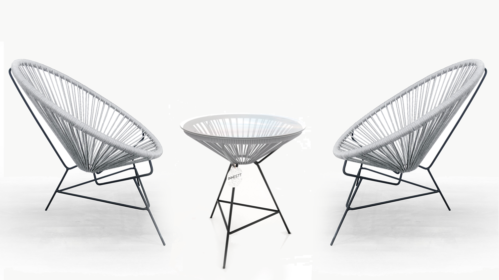 Представяме ви ръчно изработения Градински сет - 2 кресла и масичка в изискания цвят Светло сив. Този елегантен комплект е създаден от метал и ПВЦ, предоставяйки ви съчетание от стил и издръжливост.