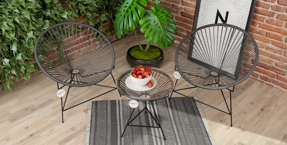 Градински сет - 2 кресла и масичка (Черни)