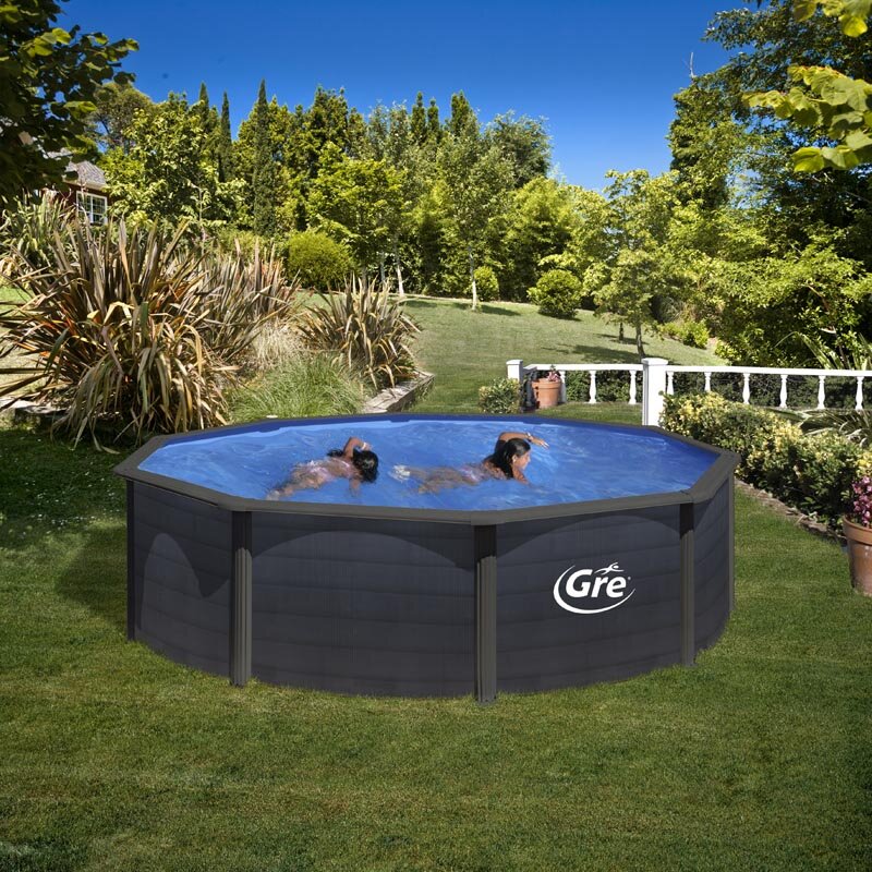 - Напълно Оборудван Комплект: Включва стена от поцинкована стомана, сив UV-устойчив линер, стълба със система за сигурност и пясъчен филтър 4 m3/h.