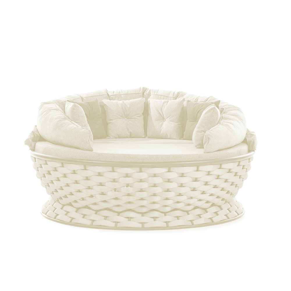 Този кръгъл диван съчетава елегантен дизайн с практичност, предлагайки ви идеалното място за почивка под открито небе.