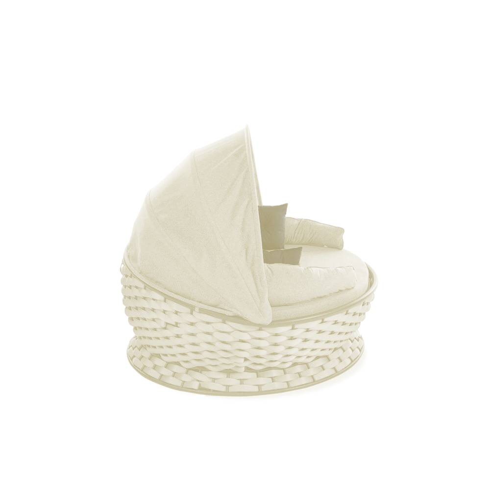 Усъвършенствайте вашата зона за отдих с този стилен кръгъл диван в кремав цвят. Оборудван с козирка, която може да се сваля, той предоставя комбинация от удобство и функционалност.