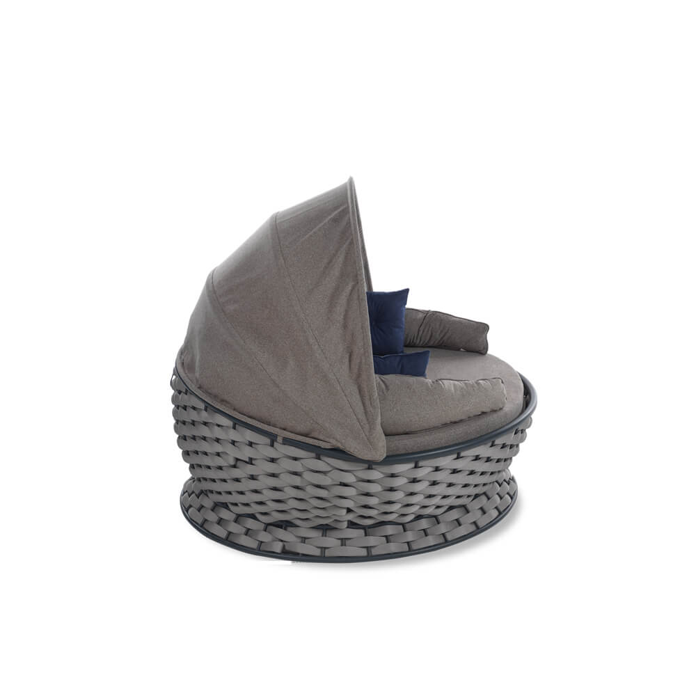 Със своята козирка, която може да се сваля, Кръгъл диван MIAMI СВЕТЛО СИВ ви предоставя възможността да регулирате нивото на сянка спрямо вашите предпочитания и нужди.