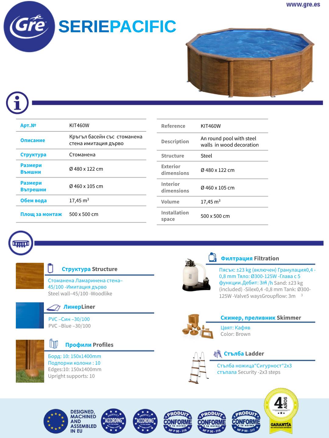- Пълен комплект с пясъчен филтър, помпа и стълба
