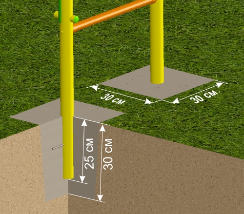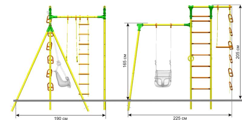 • Има трапец, с дължина на въжетата 25 см и е на височина 115 см от земята.